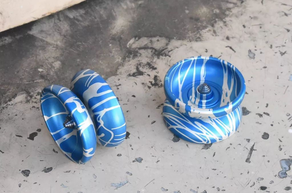 In terms of the design, we started talking to Jeff and as it turned out the ideas we had for it were similar to what he was thinking and wanting in a modern semi-responsive yo-yo. We both agreed the Deeper State was an improvement on the Deep State with its wider gap and more curvy catch zone. With that as a starting point, we decided to bring back Side Effects, make it wider and even more curvy with a bigger catch zone. We didn’t want to add too much to the width to keep it from becoming something like a Panorama. We wanted it to still be a narrow semi-responsive yo-yo that still felt okay in your pocket but had a larger catch zone to make it easier to play. In honor of Devo, a great band that spoke on related themes, we felt that shipping with Energy Domes was the move. There is a documentary about them on Netflix that Jeff highly recommends: