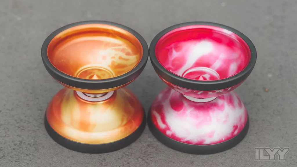 The Omega inherits all characteristics of the Alpha: diameter, width, weight, gap size. It uses the same stainless steel rings. The only difference is the shape.