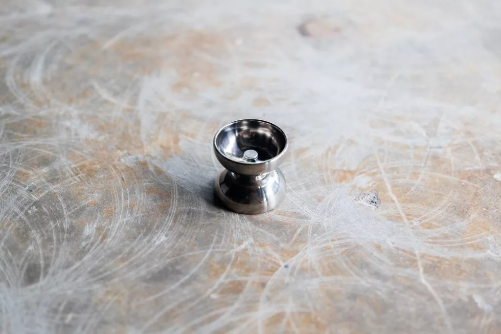 We machined a first Tide prototype in early 2022. The first prototype had a very similar weight distribution to that of the Noah, which featured zero bias towards the rims. The hubs were a clean, lipless cup with unbroken curvature. We sent one to Coleman, who had just joined Team Atmos at the time, for testing and feedback. His response resonated with what we were thinking, too – which was that it was too airy. Light and floaty is good, but there’s a threshold in distributing weight where it just gets too sparse, and it starts to feel anemic and weak. This often happens with “purer” organics, since the initial instinct is to be stingy with rim weight. Yet the solution to the issue was not just to pile on mass at the rim, which would have altered the profile of the playfeel, but to very gently overhaul the entire structure of the hub, and increase rim weight judiciously while maintaining a commensurate relation to its overall mass.